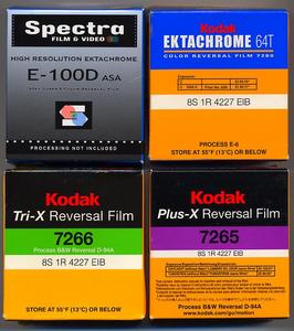 Kodak Ektachrome 100D (daylight balanced) film has been released by Kodak. Ektachrome 100D should prove an interesting option for using lower grain ASA color reversal film stocks outdoors. Generally speaking, the lower the ASA, the less noticeable the grain structure is. However, the Ektachrome 100D has noticeably less grain than the Ektachrome 64T (Tungsten balanced). The Ektachrome 64T produces accurate real colors, along with a bit more grain than the Ektachrome 100D. Ektachrome 64T has struggled a bit in it's effort to replace Kodachrome 40. Although Ektachrome 64T has excellent color reproduction it seems to be a Dr. Jekyll and Mr. Hyde kind of film stock in terms of grainiess, some love the fine grain, others think the 64T film stock is too grainy. Some people like less grain and claim to have gotten lower grain results, others seem to either like the grain or don't think it is excessive. Spectra Film and Video is loading both Fuji Velvia and Kodak Ektachrome 100D in the Super-8 format, however, now that Kodak is supplying Ektachrome 100D, Spectra Film and Video may just concentrate on Fuji Velvia instead. Kodak Ektachrome 100D and the Fuji Velvia are probably the two least grainy super-8 color reversal film stocks and they are the remaining color reversal stocks still made. Spectra Film and Video also sells the Fuji Velvia and the Kodak Ektachrome 100D in 16mm.