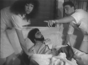 The image from the right is from an Award Winning Super-8 film called Decoy For Terror. In this instance the original movie soundtrack was played back on location and the actors lip synched to it. This type of production will present copyright issues at a later date so I don't recommend this specific approach unless one can get permission to use the original soundtrack before filming.